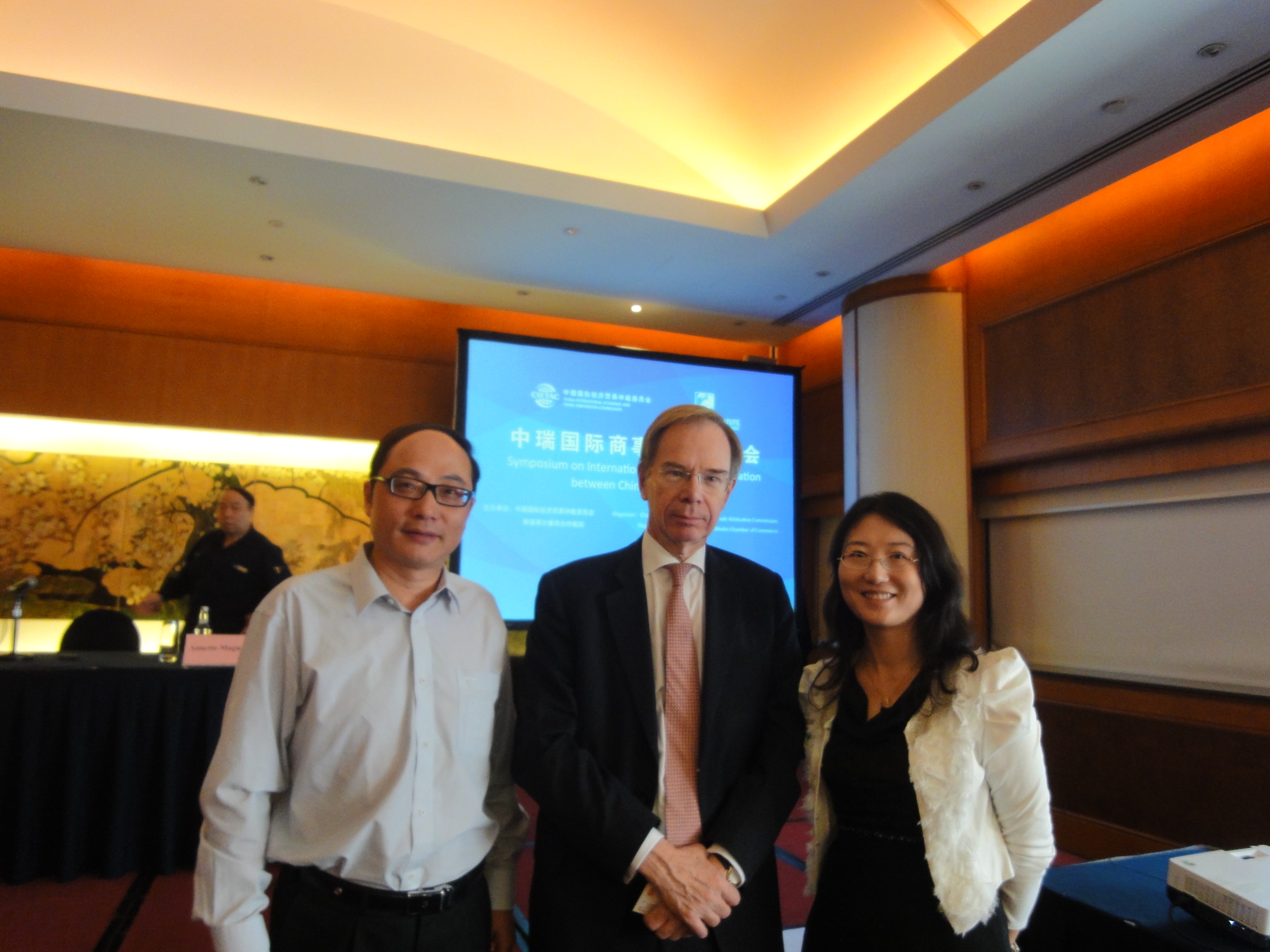 2012年9月18日,中国国际经济贸易仲裁委员会(“CIETAC”)和斯德哥尔摩商会仲裁员(“SCC”)举办的国际仲裁研讨会在北京凯宾斯基饭店隆重召开。本次仲裁研讨会对CIETAC和SCC的新发展、CIETAC新规则有关实务以及SCC仲裁实践等议题进行了研讨。参会嘉宾包括CIETAC秘书长于健龙、监督处处长赵健、国内案件处副处长岳洁、外交学院法学院院长卢松、瑞典Vinge律师事务所、MANNHEIMER SWARTLING律师事务所律师等。 市律协仲裁法律专业委员会积极组织30余名律师参与这一国际性研讨会议。市律协仲裁专业委员会主任朱建岳、副秘书长李云丽出席会议并与SCC主席Johan Gernandt、秘书长Annette Magnusson进行了深入沟通交流。