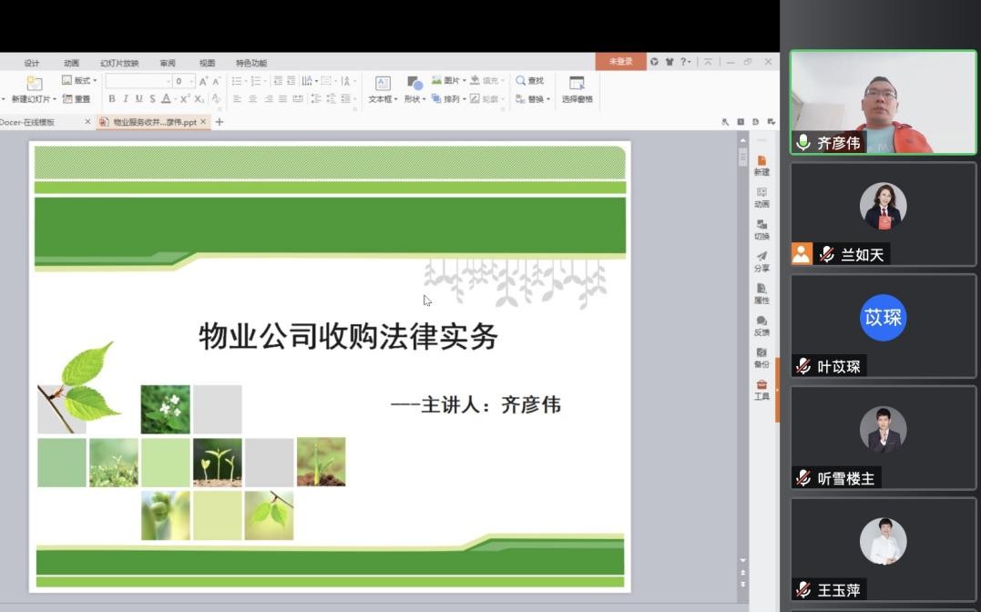 2022年4月15日下午,永盈彩票公司法专业委员会(以下简称公司委)举办《物业公司收购法律实务》的主题业务培训,培训以网络视频会议形式举行。本次培训由公司委副主任齐彦伟主讲,公司委主任张秀华主持,公司委部分委员参加了本次培训。