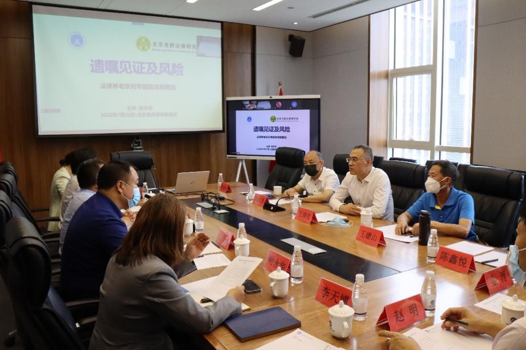 2022年7月22日,永盈彩票老龄法律服务研究会、北京老龄法律研究会助孝信托专业委员会在北京圣伟律师事务所共同举办“遗嘱见证及风险”业务培训。市律协副会长王清友、市律协老龄法律服务研究会主任陈洪忠、北京老龄法律研究会副会长王德山、通州区律协副会长罗冬根、北京老龄法律研究会分会副会长秦凤伟,北京老龄法律研究会分会副会长刘亚萍等二十余人参加了此次培训研讨会。会议由秦凤伟主任主持。