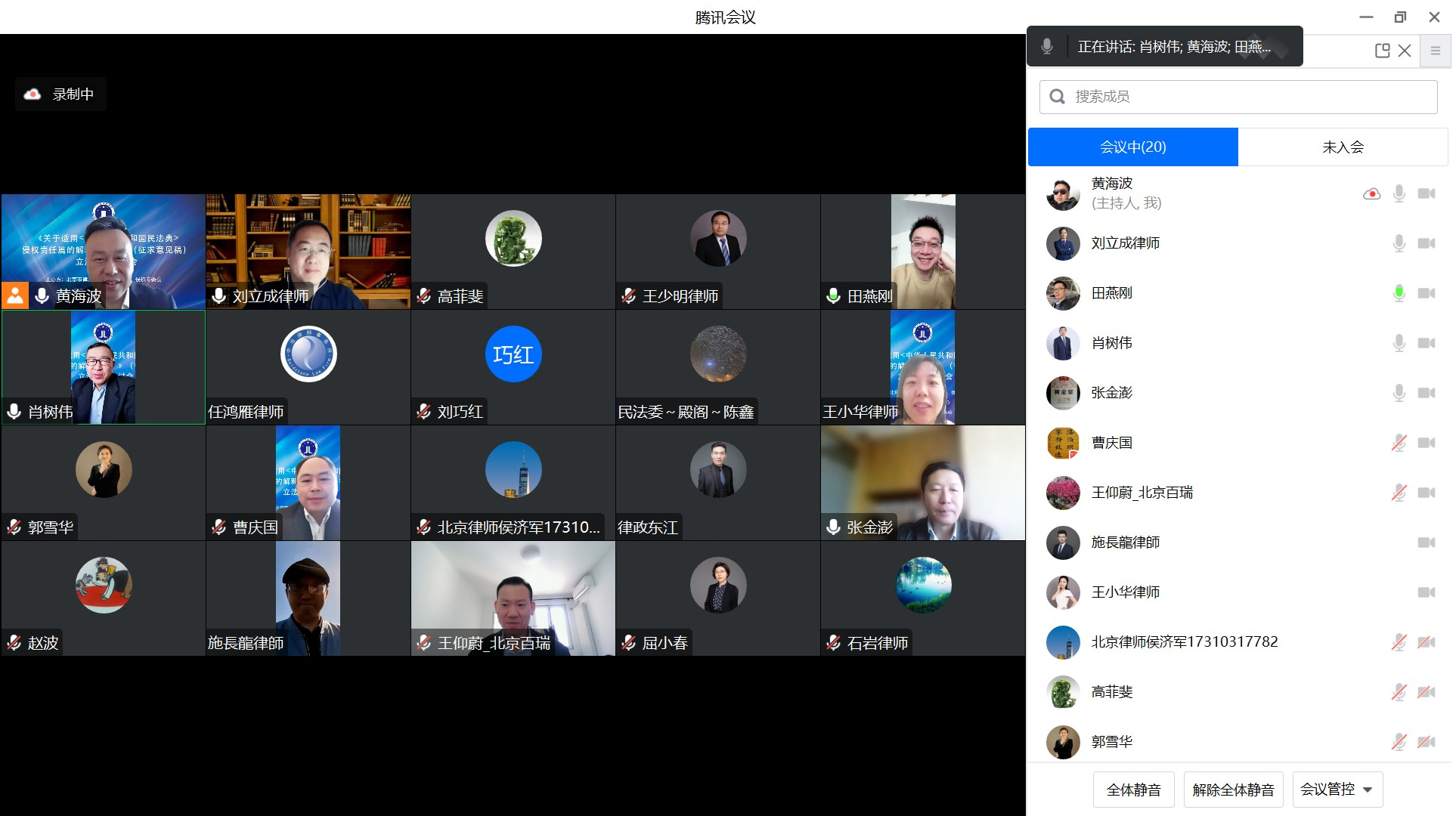 4月16日上午,北京律协民法、交通管理与运输法律、侵权法专业委员会以线上形式召开了最高人民法院《关于适用<中华人民共和国民法典>侵权责任篇的解释(一)(征求意见稿)》立法建议研讨会。民法专委会主任张金澎,交通专委会主任黄海波,侵权法专委会主任田燕刚及三个委员会部分委员参加研讨会。研讨会由黄海波主持,张金澎、田燕刚分别进行总结。