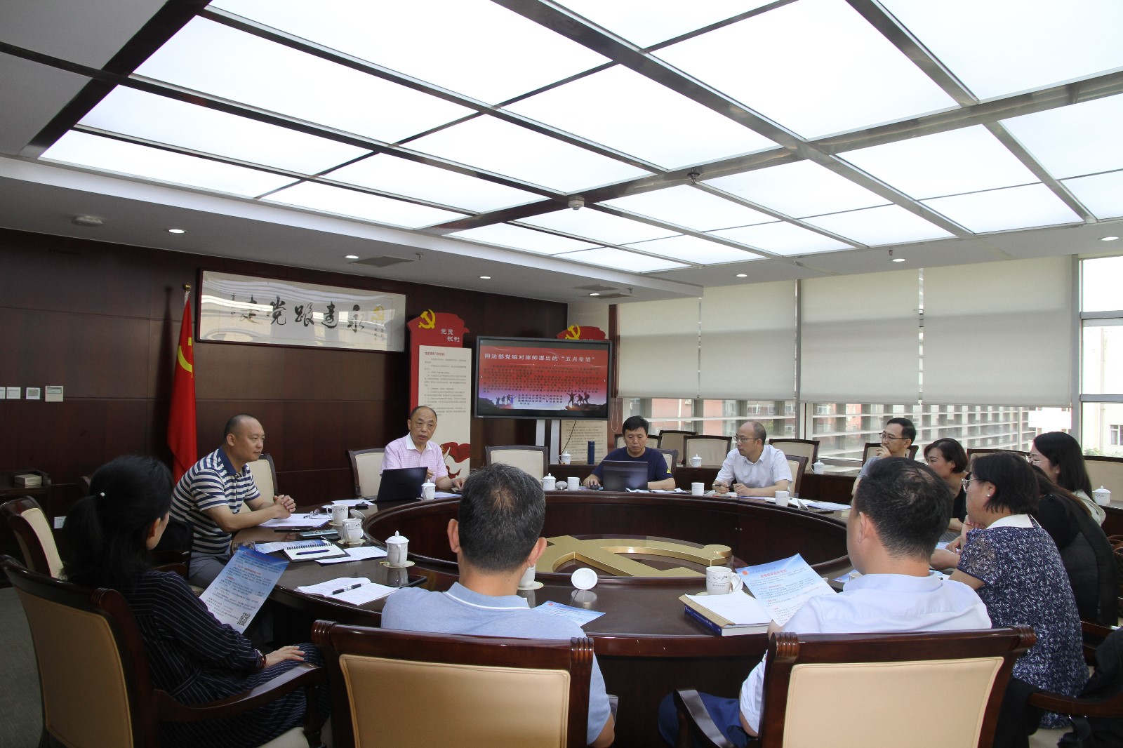 陈洪忠带领大家学习了习近平总书记在中央全面依法治国工作会议上的重要讲话、司法部部长贺荣在全国律协调研时的讲话、北京市司法局局长崔杨到北京律协调研律师工作的讲话、《依法保障律师知情权阅卷权会见权等执业权利的十条意见》等内容。与会委员结合本届老龄委的拓展经验和研究成果,围绕司法部党组新近对律师提出的“五点希望”进行了讨论,对今后老龄委的专业发展方向进行了展望。