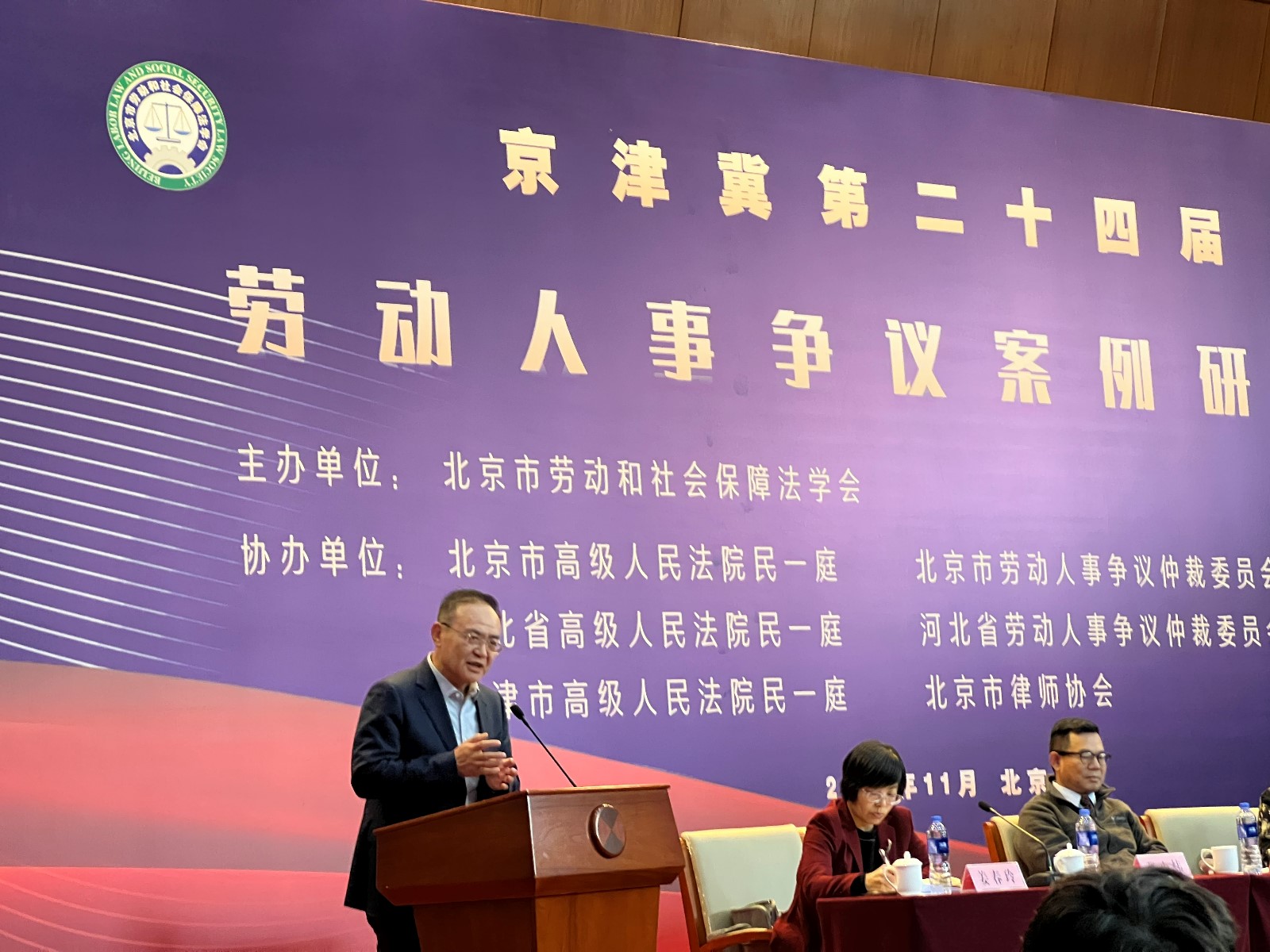 11月9日至11日,京津冀第二十四届劳动人事争议案例研讨会在北京阳光国际会议中心举行。会议由北京市劳动和社会保障法学会(以下简称“劳动学会”)主办,永盈彩票、北京市高级人民法院民一庭、天津市高级人民法院民一庭、河北省高级人民法院民一庭、北京市劳动人事争议仲裁委员会办公室、河北省劳动人事争议仲裁委员会办公室协办。来自京津冀三地各级法院系统从事劳动人事争议审判工作的法官、各级劳动人事争议仲裁机构的仲裁员、各大院校专家学者、各级工会干部、律所律师和企事业单位的人力资源管理人员共计172人参加了本次案例研讨会。与会人员就当前劳动人事争议中的前沿问题进行了研讨。