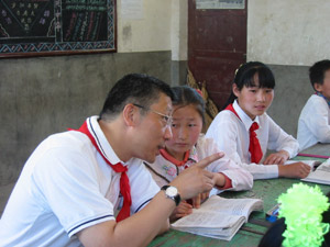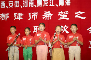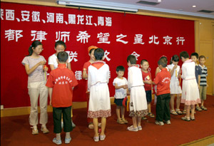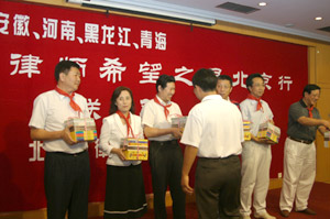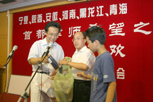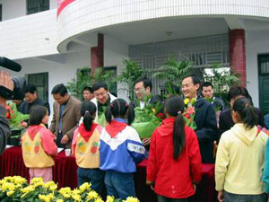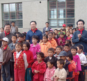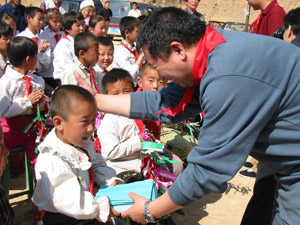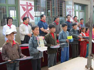 2004年5月19日,北京律协回访陕西 北京律协回访团向孩子们赠送学习用品 “北京律师希望小学”