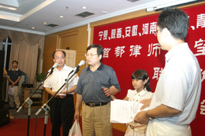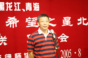北京律协会长李大进在欢迎晚宴上致欢迎词 青海省律协秘书长刘柏林代表希望小学在 欢迎晚宴上致词
