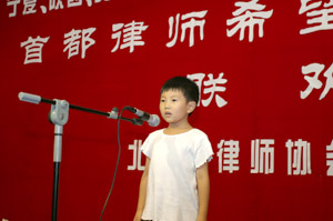 李大进会长在“首都律师希望之星北京行” “叔叔,我给您戴红领巾” 联欢晚会上致词