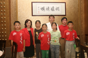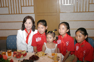 联欢晚会会场 金莲淑副会长与希望小学的孩子们合影