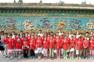 北海九龙壁前的合影 赵小鲁总监事陪孩子们参观建元律师事务所
